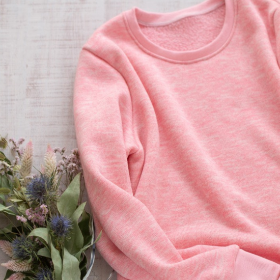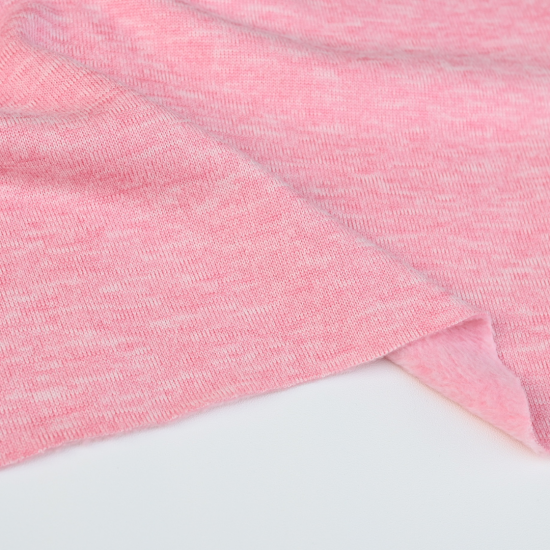 糸の色が混ざり合うことで生まれるメランジならではのふんわり霜降りカラーがお洋服を